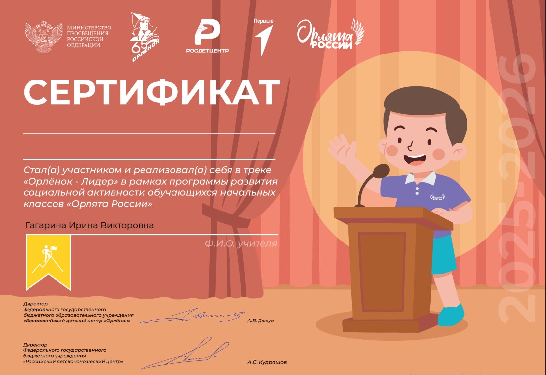 Сертификат участника трека Орлёнок- лидер . Октябрь 2025 г.