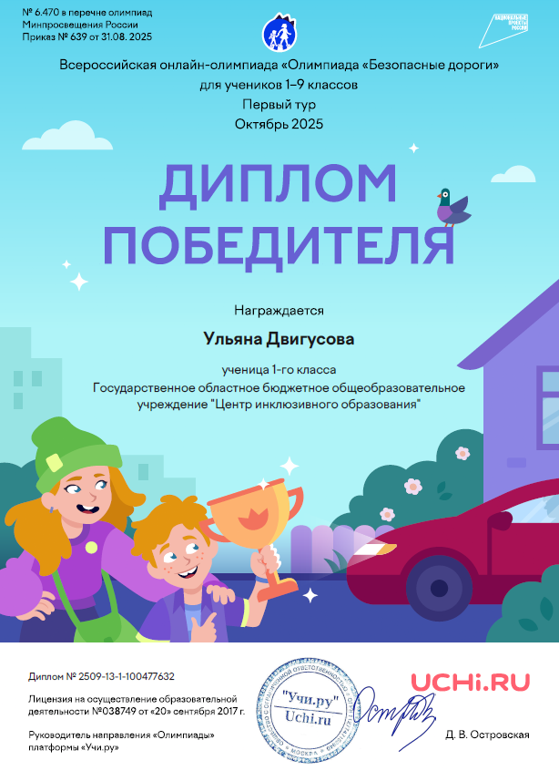 октябрь 2023 Всероссийская онлайн-олимпиада на Учи.ру "Безопасные дороги"