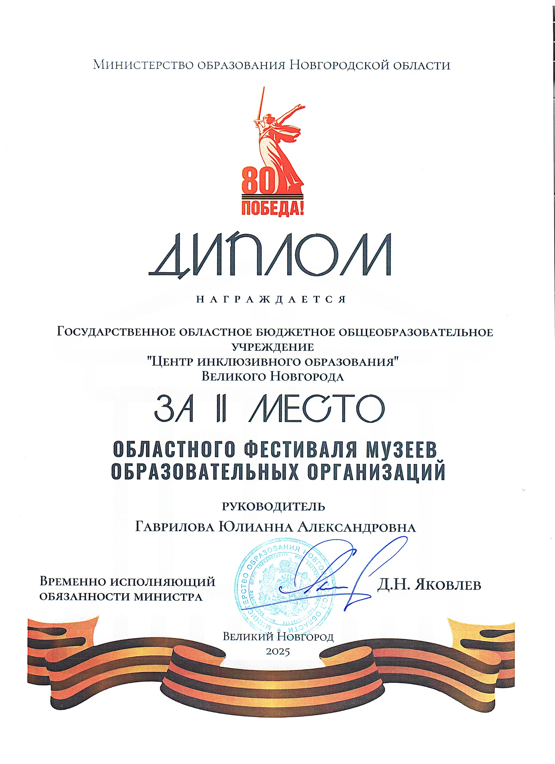 2. Диплом победителя областного фестиваля школьных музеев - ноябрь 2025