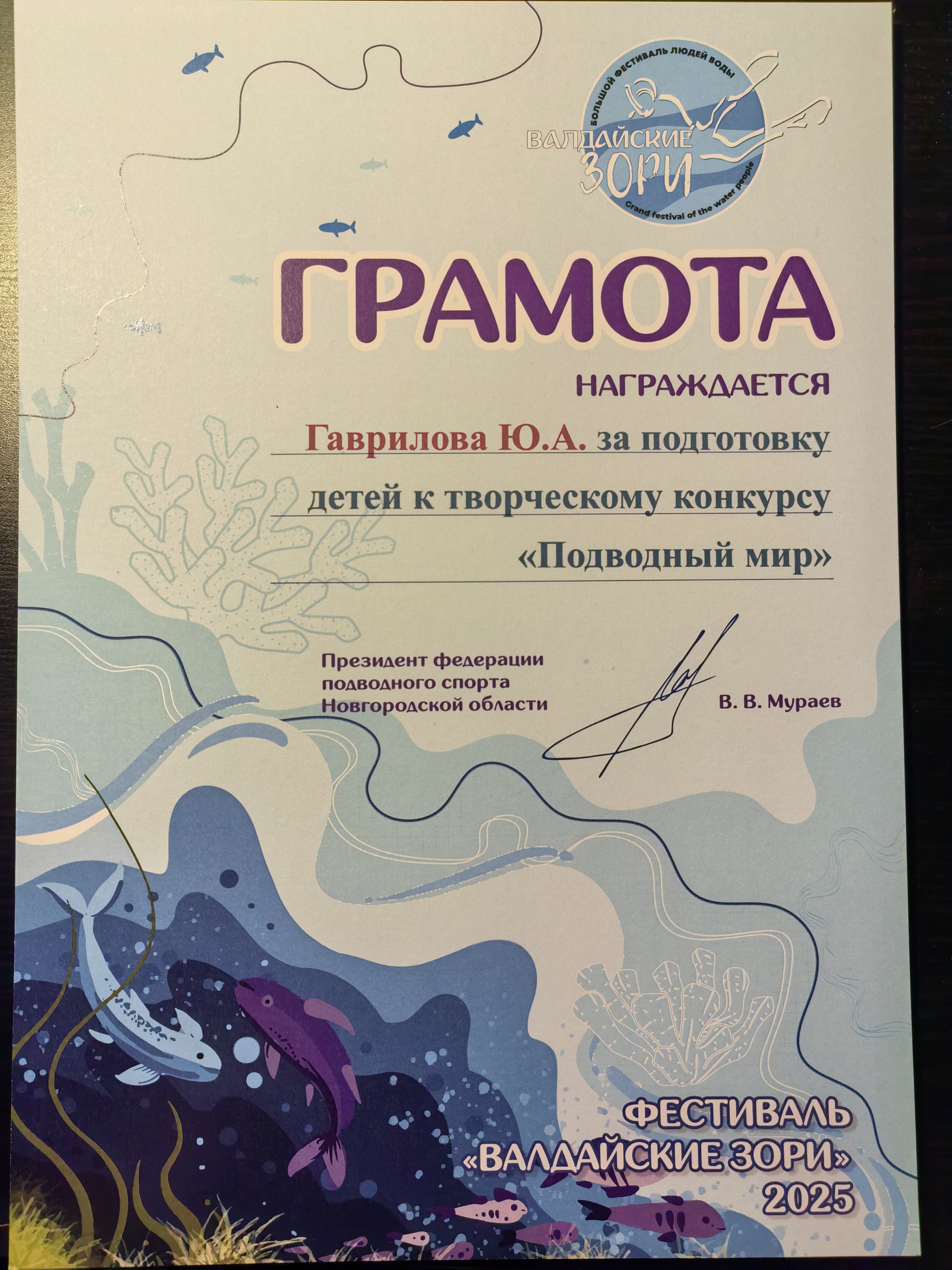 1.  Грамота за подготовку детей к творческому конкурсу "Подводный мир" - сентябрь 2025