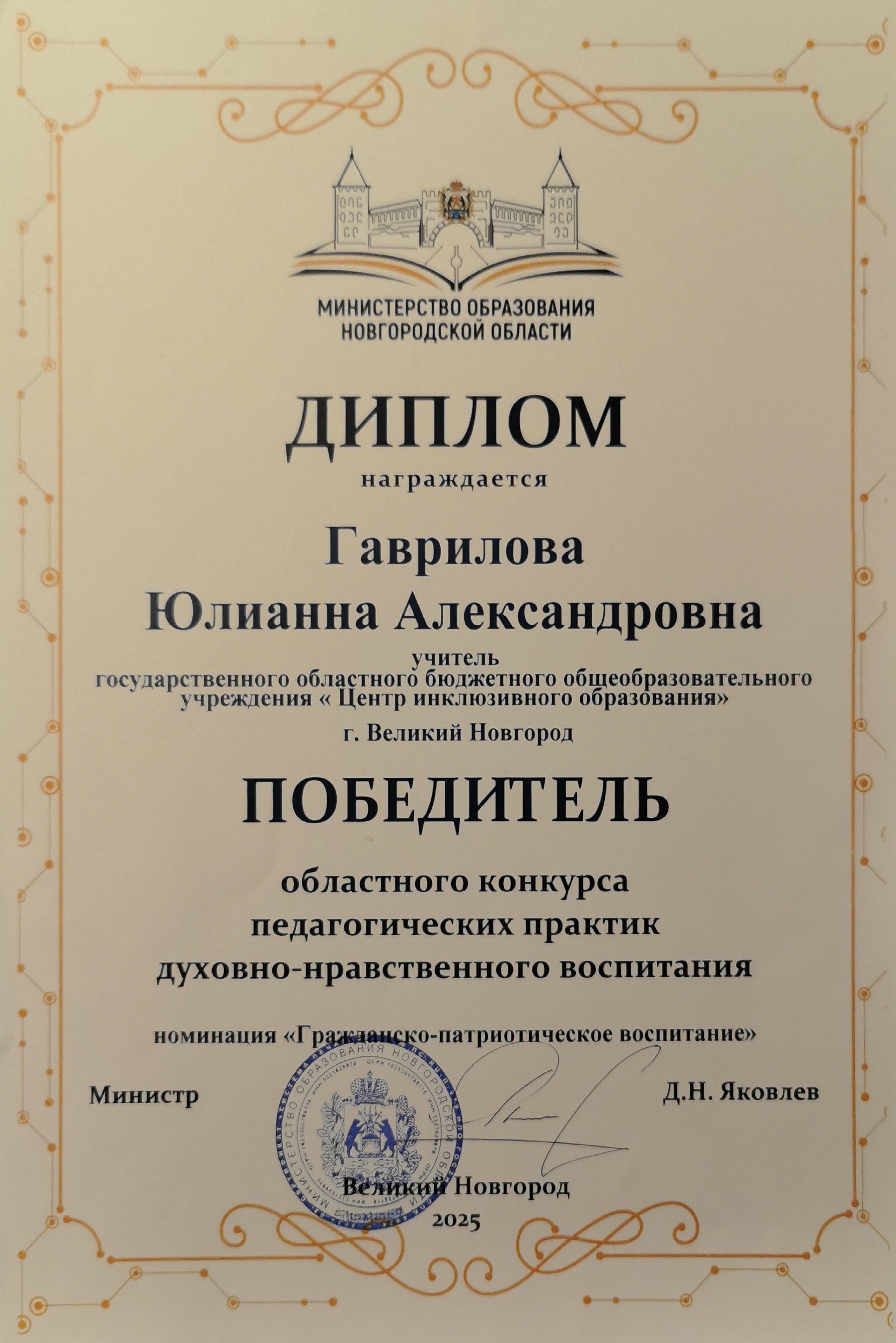 13. Победитель 1 место в областном конкурсе педагогических практик духовно-нравственного воспитания - апрель 2025
